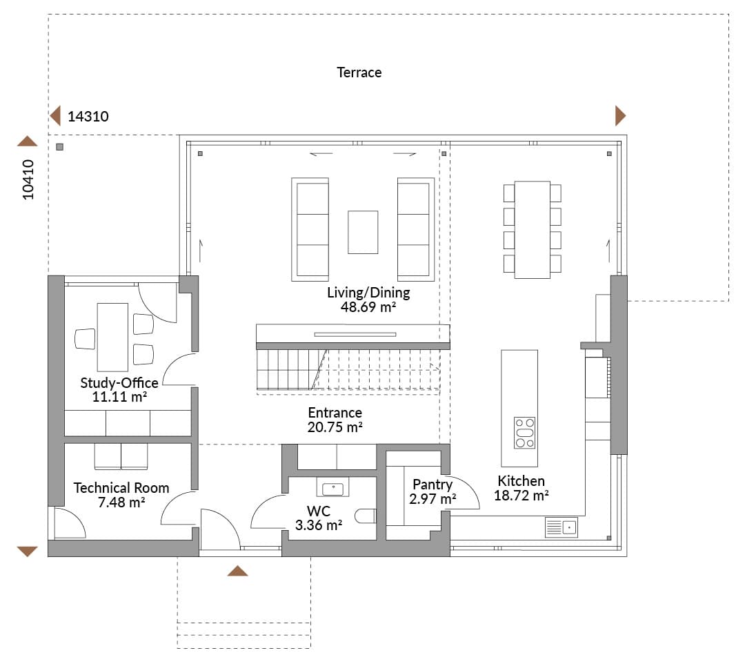 The Vision 227 is unlike any other house because, despite the traditional shape with its pitched roof, it looks as if it was modelled from a single mould: no roof overhang, no protruding elements. Instead, there are many surprising details and architectural features to catch your eye.