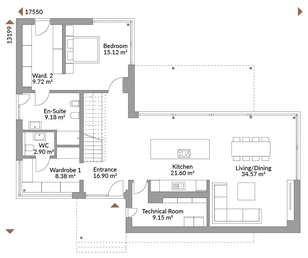 There is something majestic about this magnificent building. The middle structure towers over everything, almost as if it's floating. This gives the architecture lightness and harmony while revealing the more practical aspects of the covered entrance and terrace.