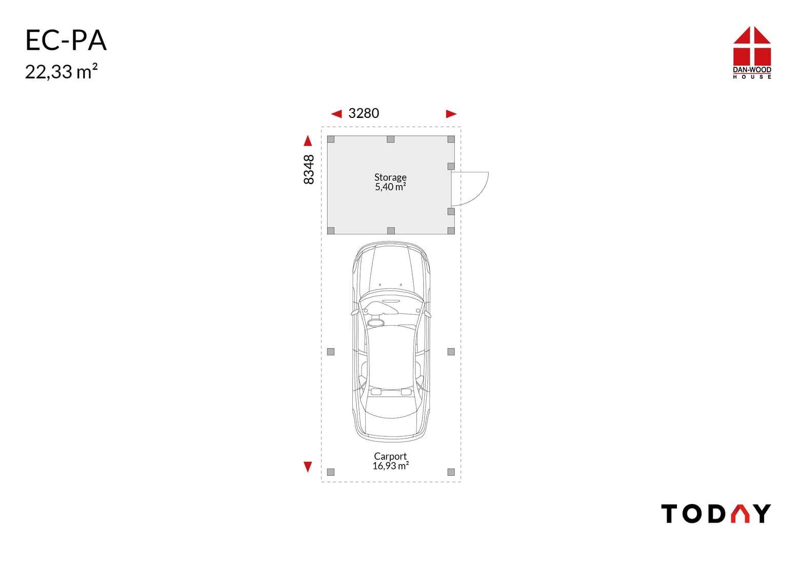 Single carport with utility room and pent roof (22.33m²); external dimensions 3.016m x 7.996m.